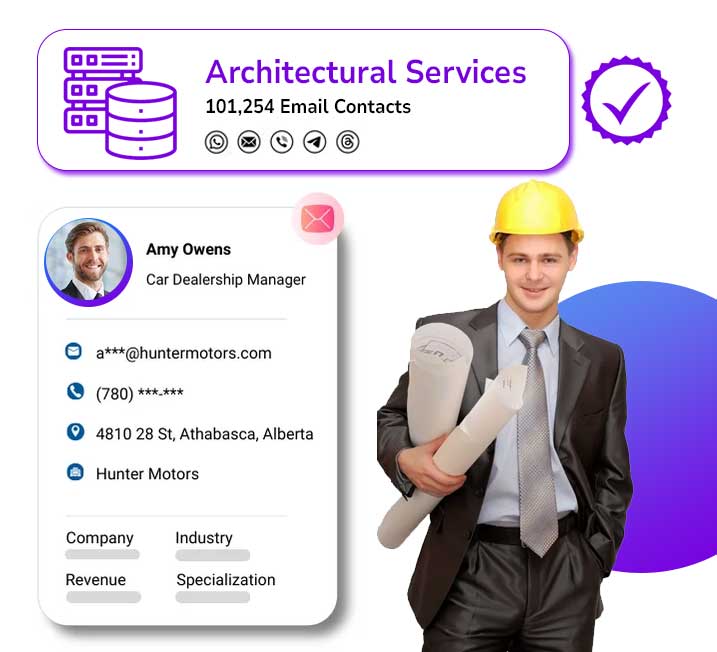 As a verified business email database provider, we help you reach potential consumers with valuable information. We understand the importance of having a reliable data source for your business, and our advanced data expertise will support you in leveraging it effectively. Access an architect's email marketing database that is 95% accurate, thoroughly verified, and rich with valuable data insights.